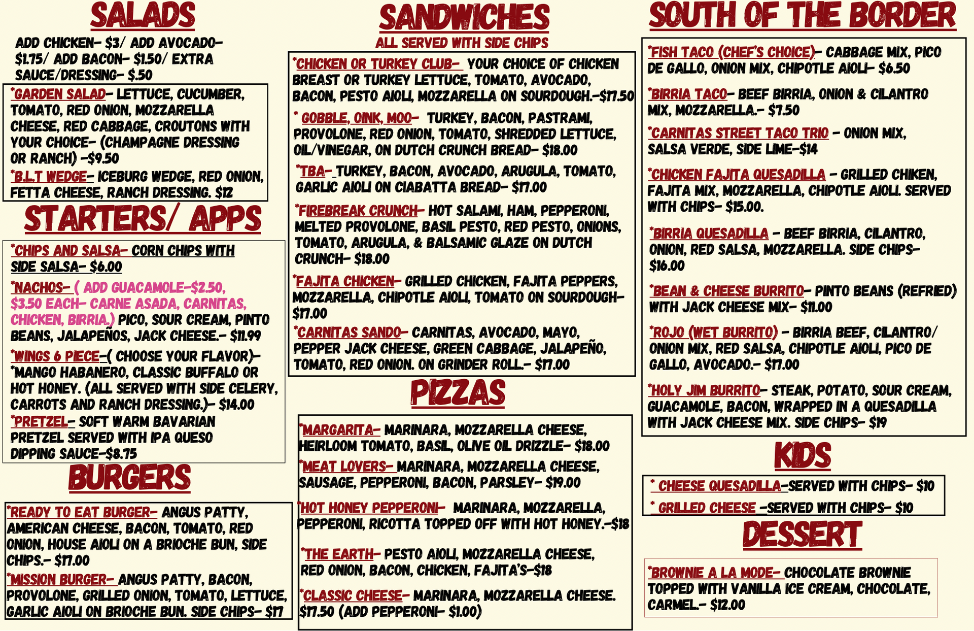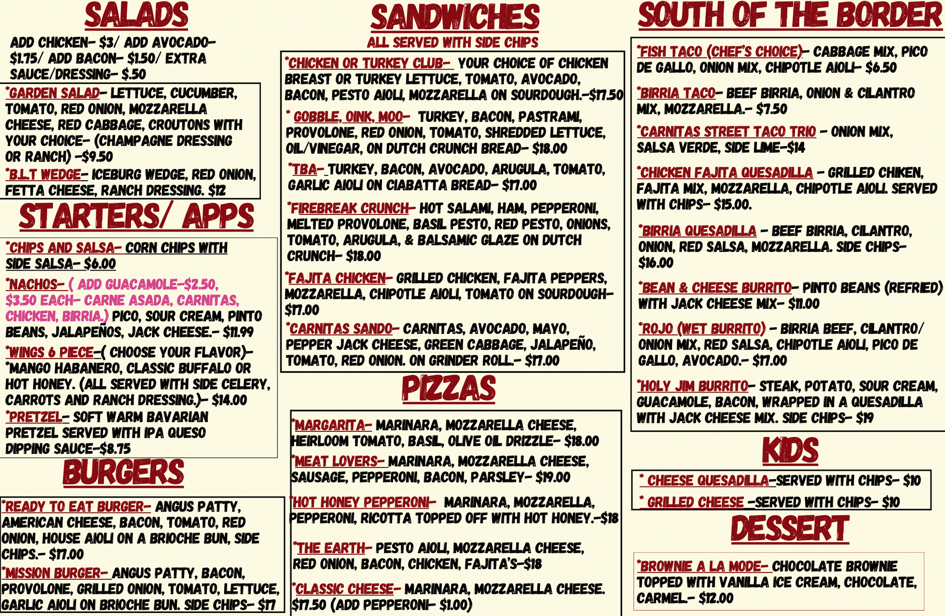 * Happy Hour Sunday-Friday from 3pm-6pm. includes $2 0ff of all Mission Ready Beers 8% abv and below.